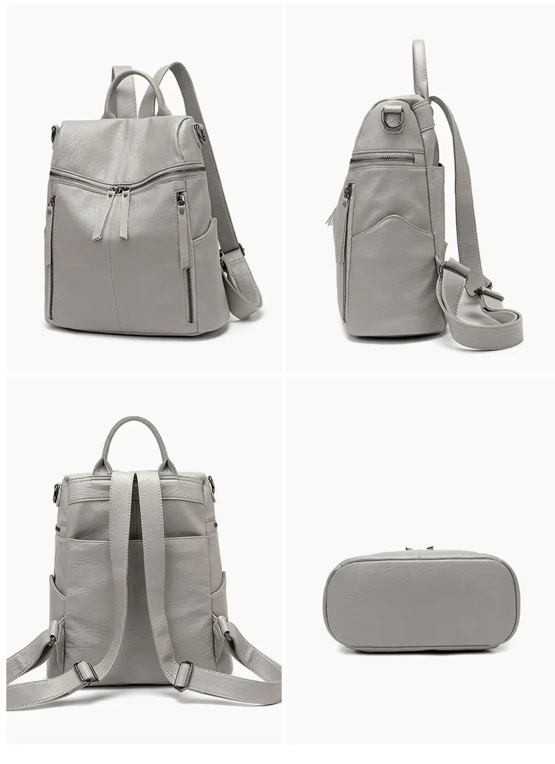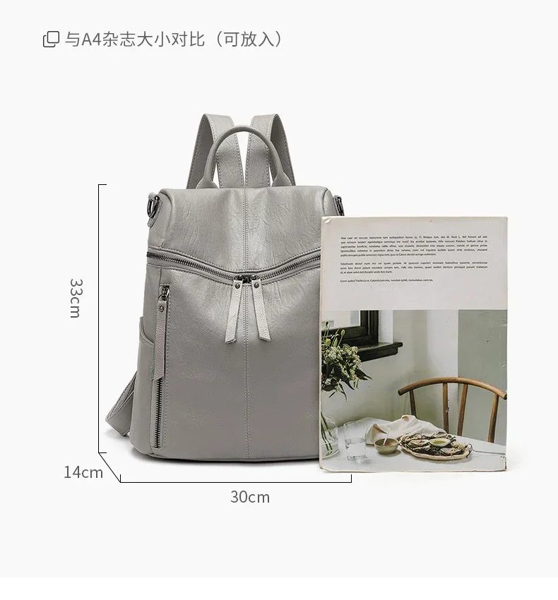 Backpack girls Korean fashion all-match soft leather cowhide leather backpack school bag dual-use pouch bags for women