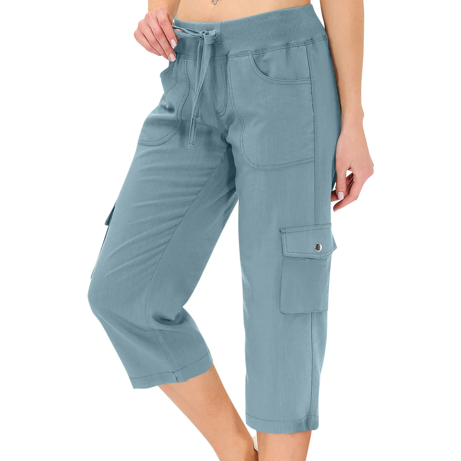 Womens Capris With Pockets Loose Fit Casual Pants Dressy Lightweight Ladies Baggy Cargo Pants For Hiking