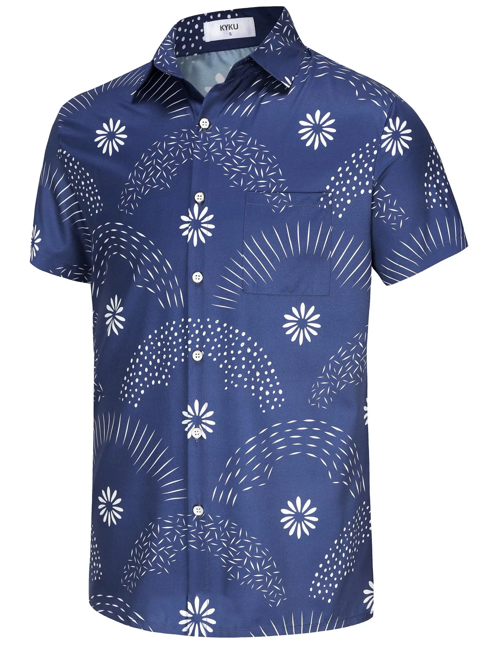 KYKU Men’s Casual Button-Down Shirts Hawaiian Shirt Short Sleeve Beach Clothes with Pockets