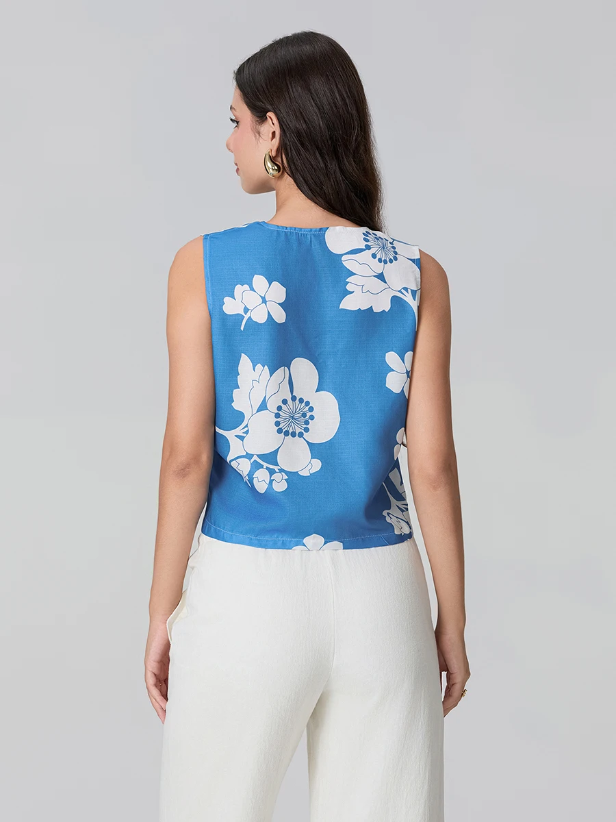Stylish Sleeveless Floral Checkered Vest Chic Tie-front Outerwear for Trendy Summer Street Style Look
