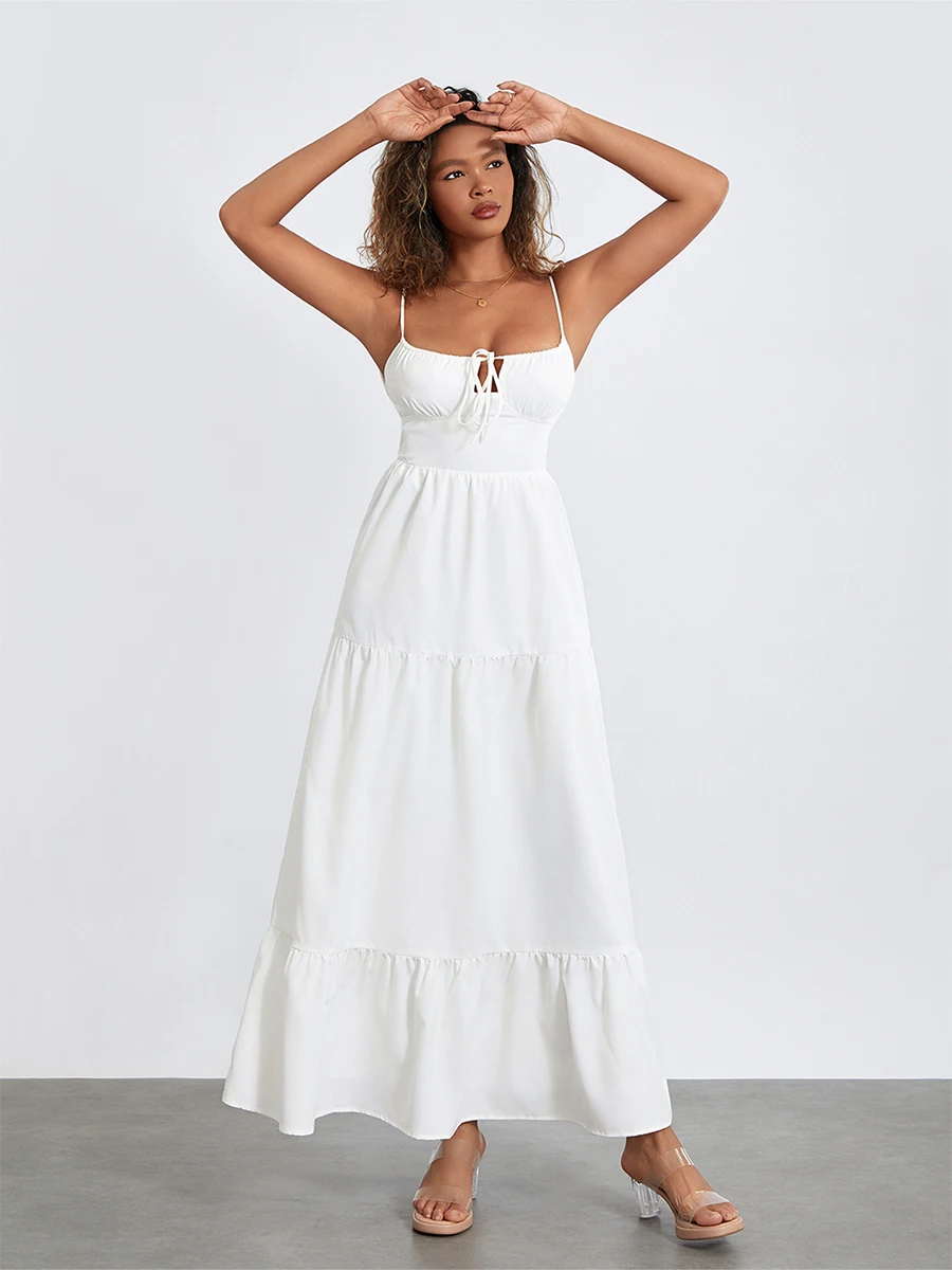 Women’s Summer Long Beach Dress Sleeveless Backless Tie Up Spaghetti Strap Bustier Dress