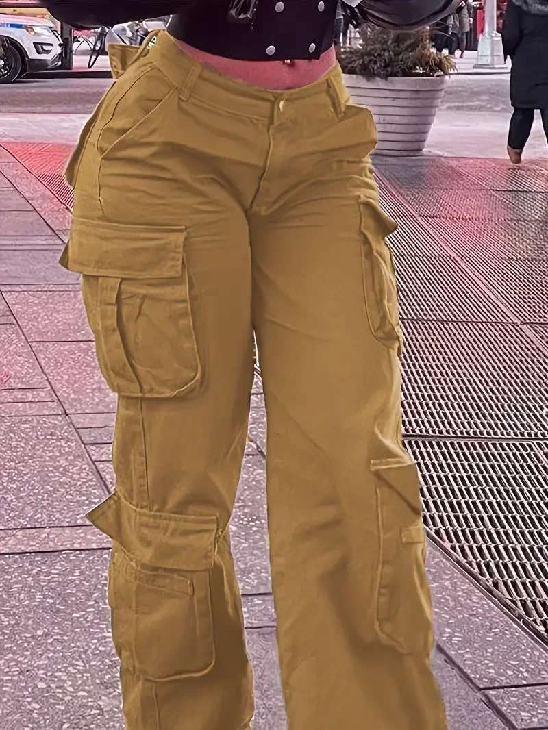Women Street Trend Multi-pocket Cargo Jeans Casual Denim Straight Leg Pants